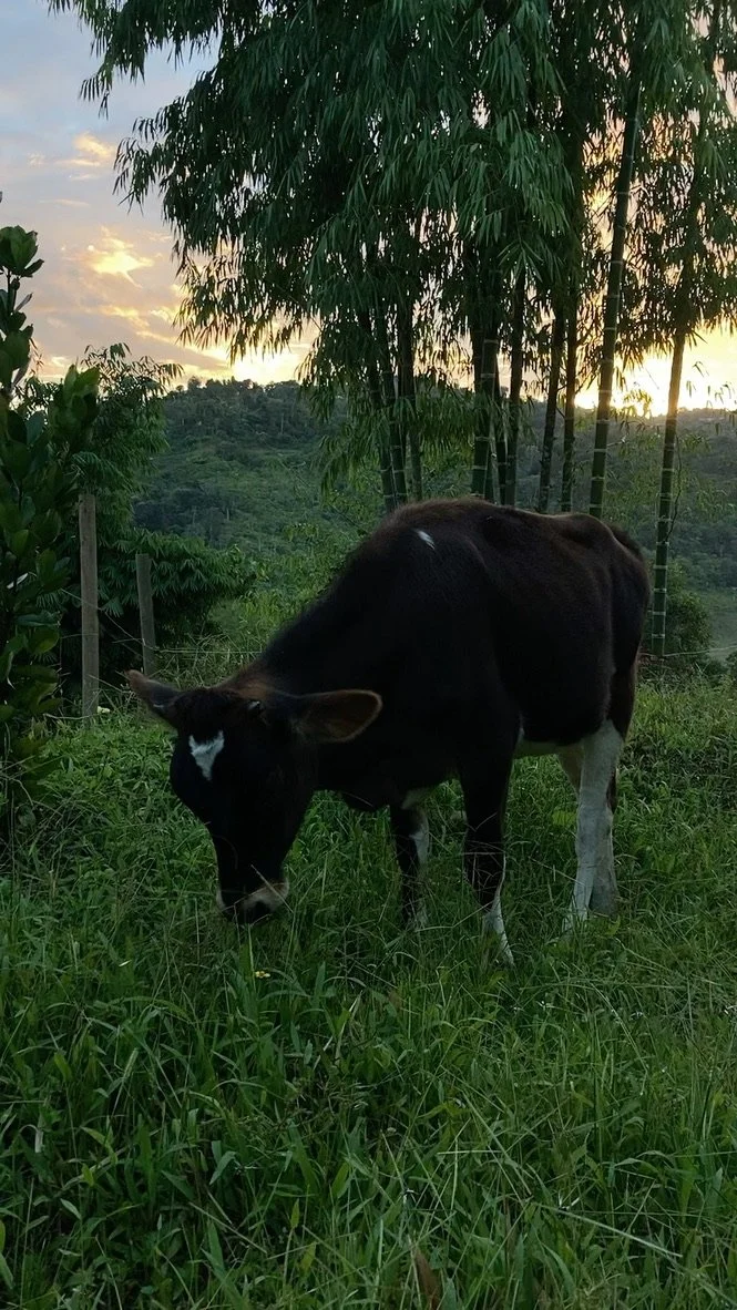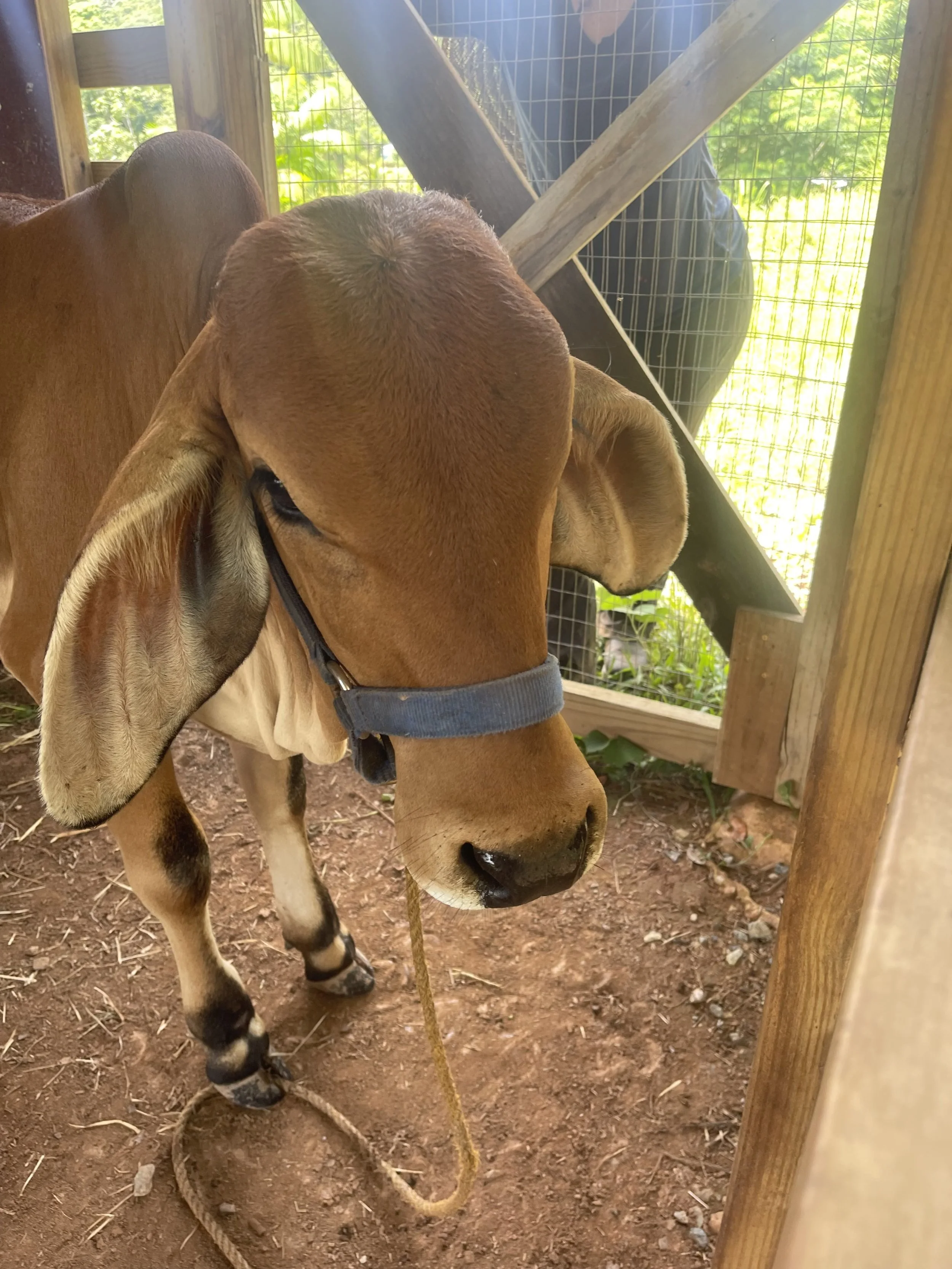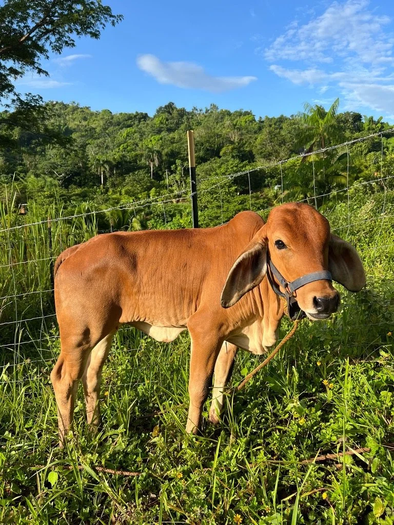 Tenemos tanto que aprender de nuestras queridas amigas, las vacas, y de Katie, cuyo servicio incansable hacia las vacas de Plenitud (y otros animales también) es una inspiración para todes que viven, trabajan, y visitan la finca. Les alentamos a todes a que sigan este consejo y pasen tiempo con animales donde puedan - o mejor aún, que vengan y nos visiten en Plenitud PR y ¡conozcan a nuestras amorosas madres vacas - Radha y Shekinah! Ambas tienen nombres que representan a la energía y presencia femenina, y la gente se encariña de ellas rápido. Mucha gente se ha sentido inspirada a cambiar sus hábitos alimenticios para reducir su consumo de carne luego de pasar tiempo con estos animales. Radha llegó a Plenitud en marzo del 2021, y creció rodeada de 4 perros ovejeros, ¡así que es tan juguetona como un perrito bebé! También es muy sociable y con frecuencia se le acerca a la gente. Le encanta la carambola y la col rizada (kale). Shekinah llegó en julio del 2023 para acompañar a Radha y ser hermanas. Como las vacas son seres sociales, y quieren amar y ser amadas tal y como nosotres lo queremos, queríamos que Radha tuviese una amiga con quien compartir. Shekinah es muy dulce y gentil, lo cual es un buen balance para Radha.