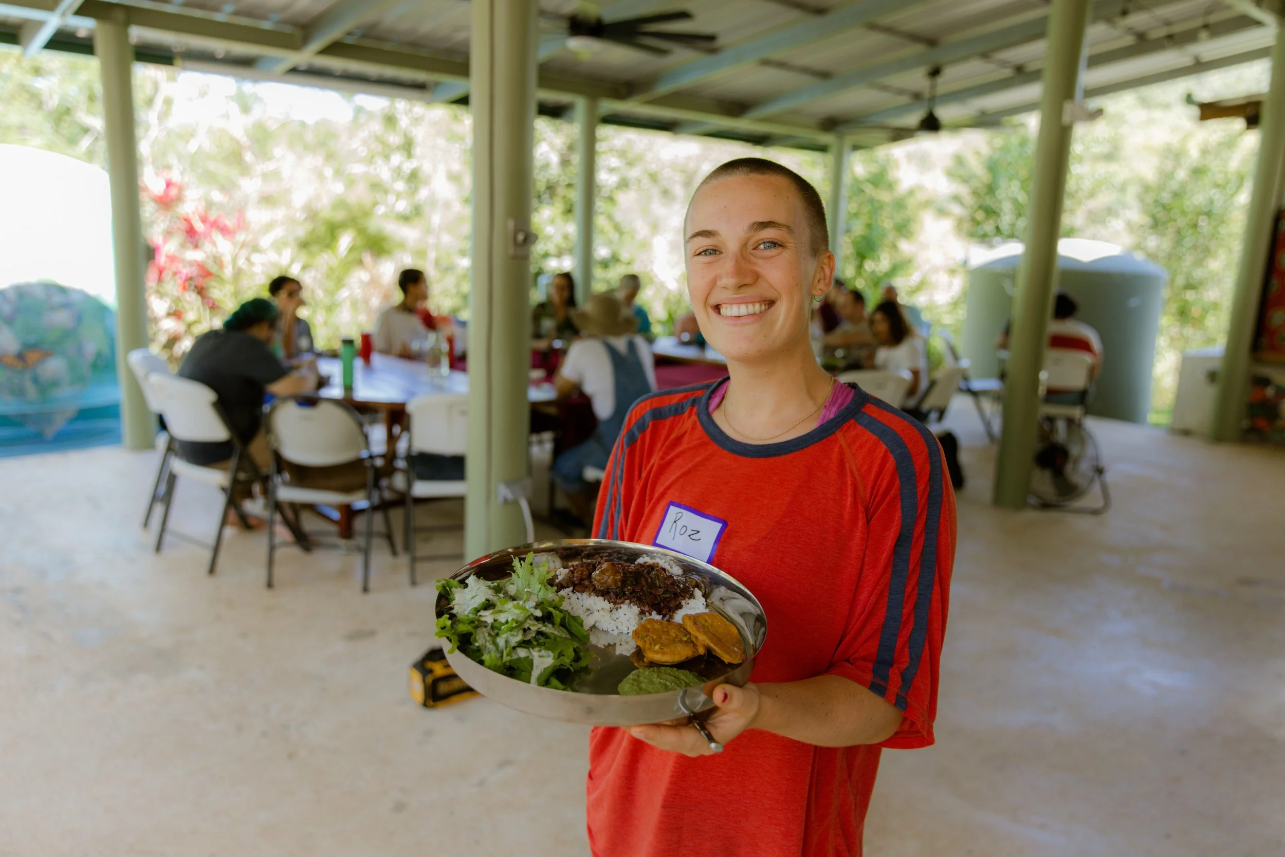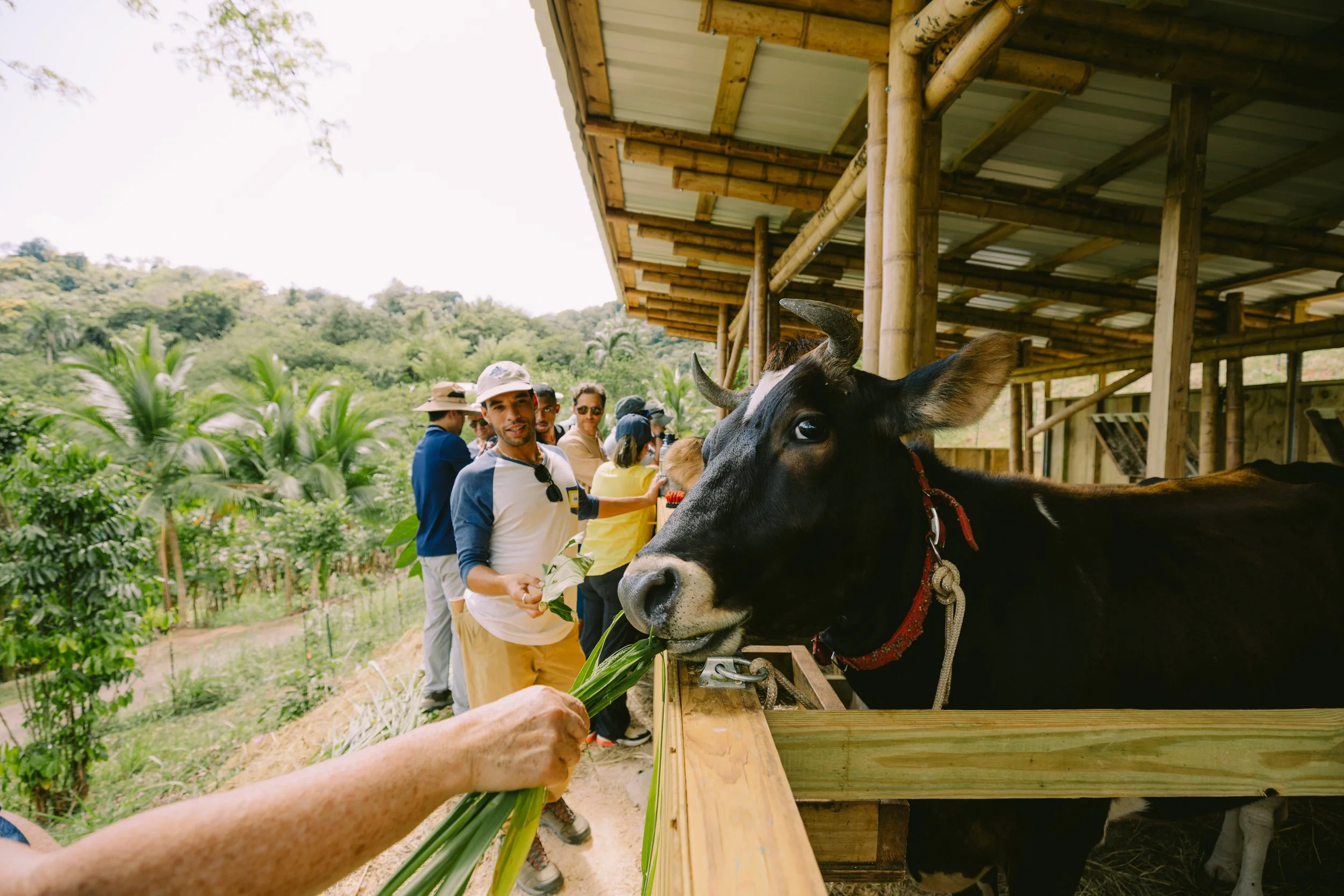 Dependiendo de la temporada, también podrás cosechar frutas y vegetales frescos para disfrutar como parte de tu almuerzo. Los deliciosos almuerzos vegetarianos son de la finca-a-la-mesa y preparados con ingredientes de nuestra finca y de otros agricultores locales. Después del recorrido, te invitamos a relajarte en el Río Arenas (según lo permita el terreno y el clima)—un espacio para leer, meditar o simplemente disfrutar del agua refrescante y los sonidos de la naturaleza.